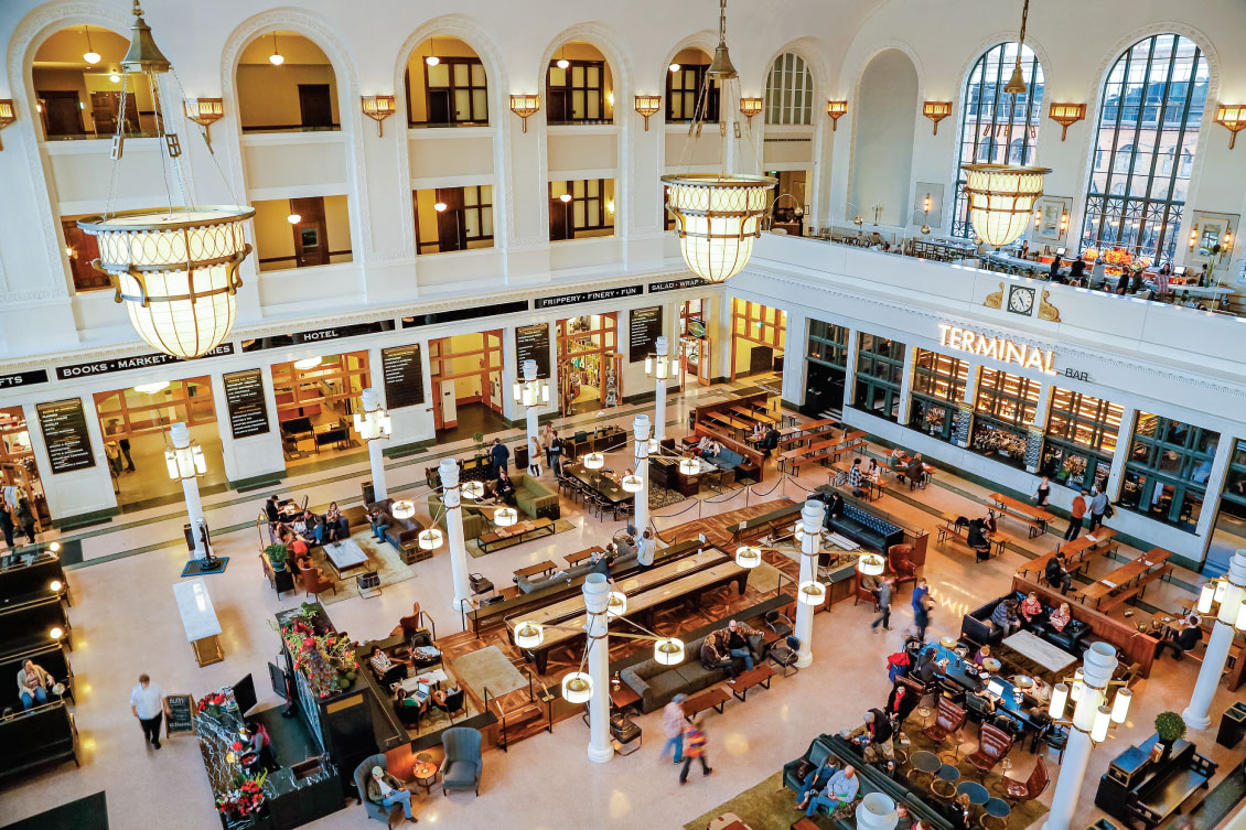 Denver Union Station has been transformed into a LEED Gold transit hub and is at the center of the hottest neighborhood in the city. Its light-filled interiors remind visitors more of an airport terminal than a bus and rail station.Photos: Mark Osler