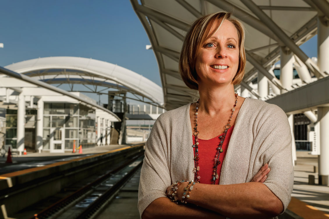 Planners in Denver took pains not only to reduce energy and water consumption (resulting in one of the few LEED Gold transit centers in the U.S.), but also to create a pleasant place that would leave a lasting impression on visitors to the city and encourage residents to spend time there, as well. Although the bus concourse is below ground, it’s been lit with skylights, and some people say it reminds them more of an airport terminal than a dingy bus station. (“When you walk down there, it still feels like you’re outside,” says Sharon Alton, executive director of U.S. Green Building Council [USGBC] in Colorado.) The historic train station’s Great Hall has furniture where people can sit and mingle, and also three shuffleboard tables. In the plaza outside, kids play in the dancing water fountain in the summertime.