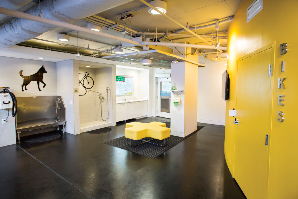 Fulya Kocak is the chairwoman of the USGBC National Capital Region Chapter and director of sustainability at Clark Construction. Top: Blair Towns dog and bike washroom. Left: Sri Velamati and Eugenia Gregorio of the Towers relate that in 2004, Blair Towns were the first LEED-certified apartments in the U.S. and in 2011 Blair Towns became the world’s first ever multifamily residential LEED Platinum under EBOM.
