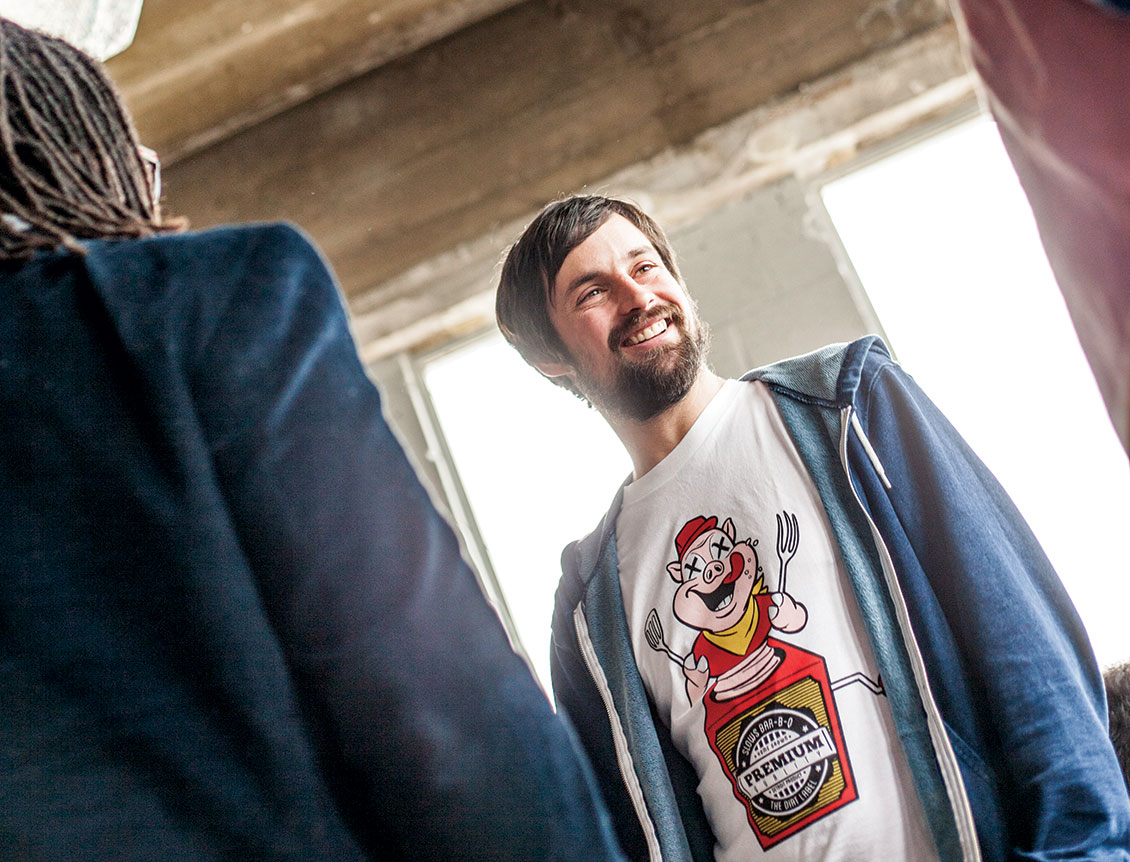Although Schwartz gives tours of the company’s downtown properties, he’s not an ordinary tour guide. His business card identifies his nebulous-but-important-sounding title as “Detroit Relocation Ambassador.” Even in the workaday world of home lending offices, he’s the life of the party, unable to walk more than a few feet without stopping to greet somebody with an enthusiastic, “What’s up, my man?” This kinglike confidence is owed, in part perhaps, to the identity of the first friend Schwartz made when he moved to Detroit as a child: Quicken founder and chairman Dan Gilbert.