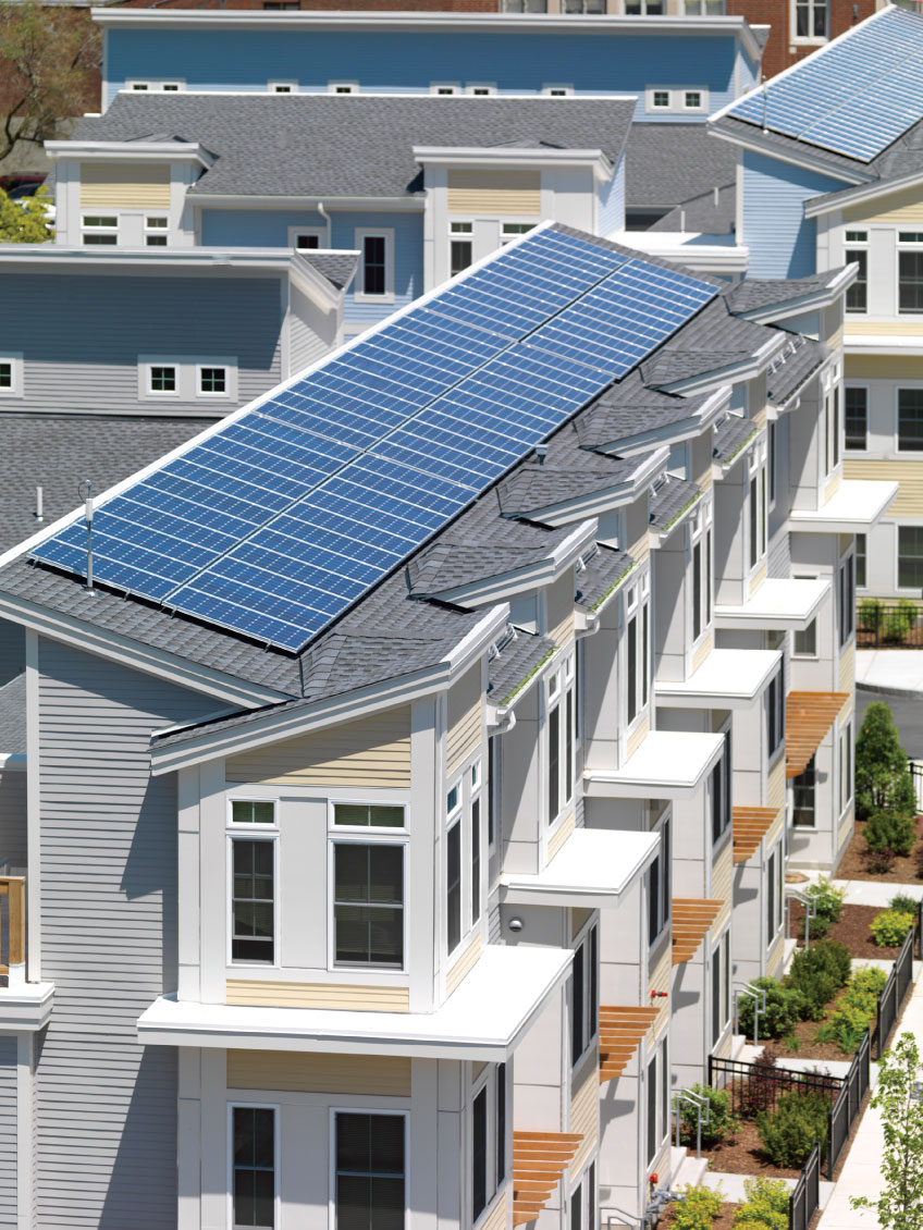 Most of the townhouses have photovoltaic panels that provide electricity to the site.