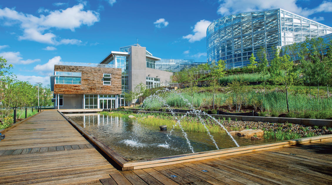 The design was put together with input from five different institutes, each of which focused on one of the following areas: alternative energy; water and desolvation; bioremediation; sustainable agriculture; and materials and membranes. The sheer speed with which it was put together is something Odell feels distinguishes the project. “And the cost was a bargain; it was not throwing money at this problem. It cost much less than similar facilities. Part of the reason for that is because it did so well with LEED and sustainable strategies. “Because of the time restraints, suppliers gave the very best price, the very first time they bid. There was a lot of, in a sense, customization around the environmental issues that we were concerned about.”