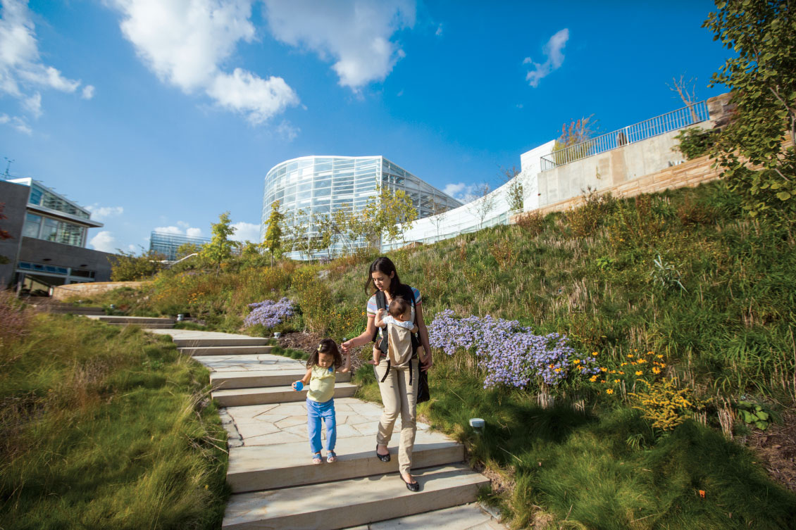 From 2008 to 2010, the team concentrated on retrofitting the building to save energy and water. Today, using Energy Management and Control Systems (EMCS), building managers are able to adjust temperatures, modify chiller plant operating schedules, as well as monitor water distribution according to tenant demand. At that time, the team also reviewed public lighting, which was ultimately converted to more energy-efficient luminaires and lighting controls. (The reduction in energy consumption is anticipated to be 33.41 million kilowatt hours per year, and they are expected to save more than 2 million dollars in operating expenses per year.) Furthermore, low-mercury and no-mercury lamp fixtures were installed throughout the building to reduce exposure levels and potential pollution.