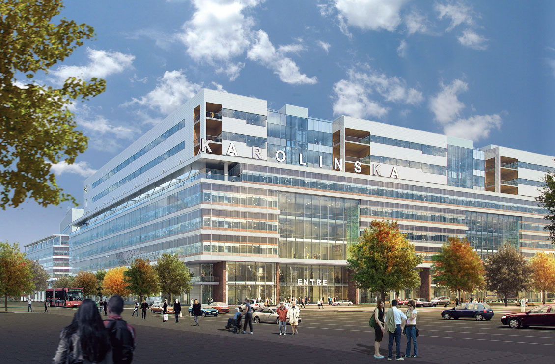 Above: The new hospital in Stockholm will be the world’s largest public/private partnership hospital. This Photo: Investors pushed for green building certification for the new university hospital in Stockholm, which Skanska is constructing.