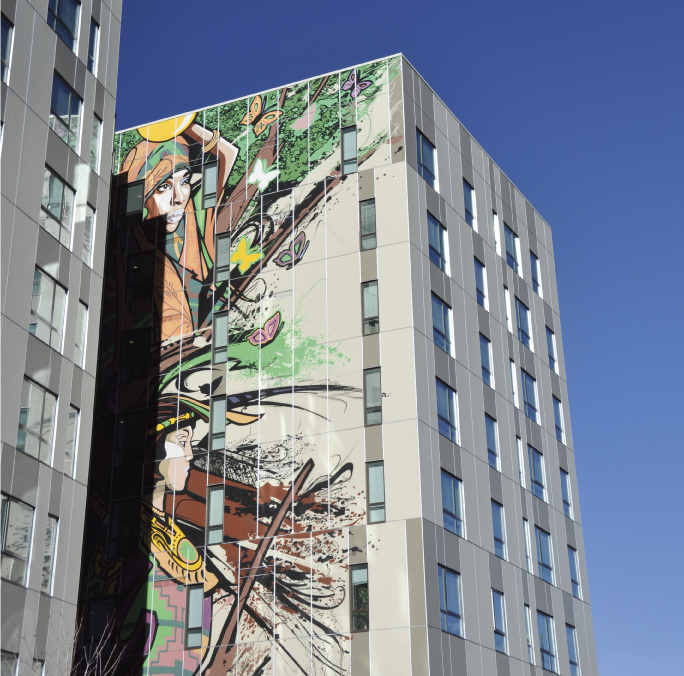 Called Mariposa—Spanish for “butterfly”—the 15-acre transit-oriented development invites the mixed-income residents to thrive. They tend community gardens, play and exercise in a park, enjoy art, and engage in special features, such as a stairwell with an art installation that uses LED lighting to tell a Mayan story, which also encourages residents to use the stairs. Better access to the light rail stop adjacent to Mariposa gives the neighborhood another dynamic aspect and easier, more environmental commuting.
